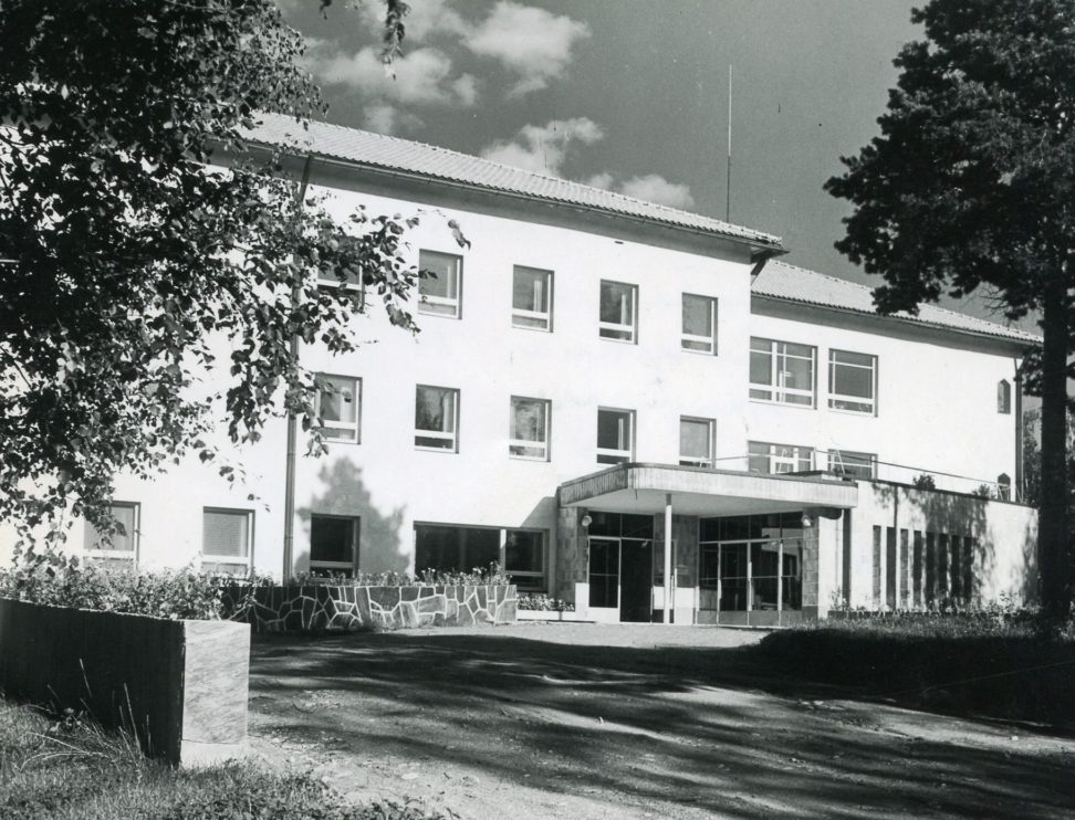 Valkeakosken sairaalayhdistyksen sairaala valmistui vuonna 1952, aluesairaalan piirtänyt Arkkitehtitoimisto Ypyä ja Malmio. Kuvanumero: 10925